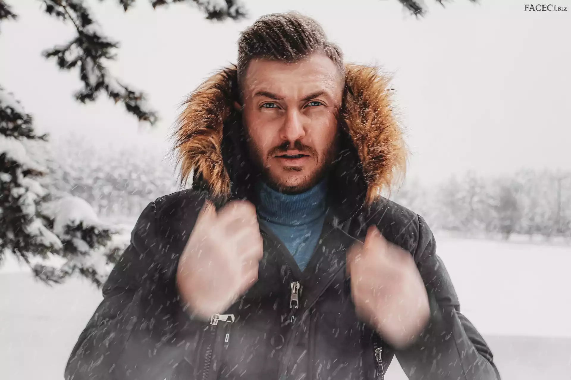 Kaptur, Kurtka, Śnieg, Zima, Mężczyzna - faceci.biz